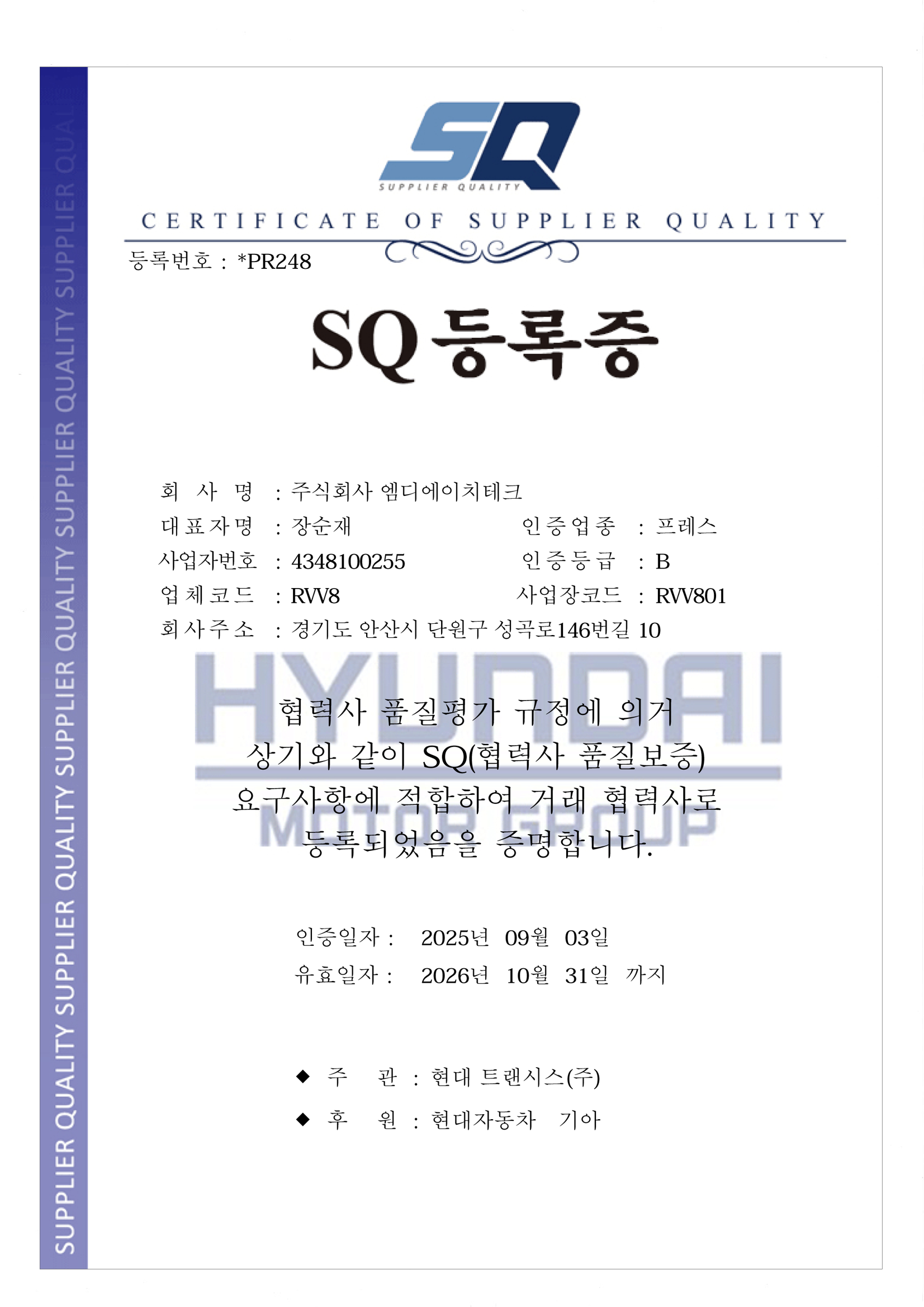 SQ 등록증